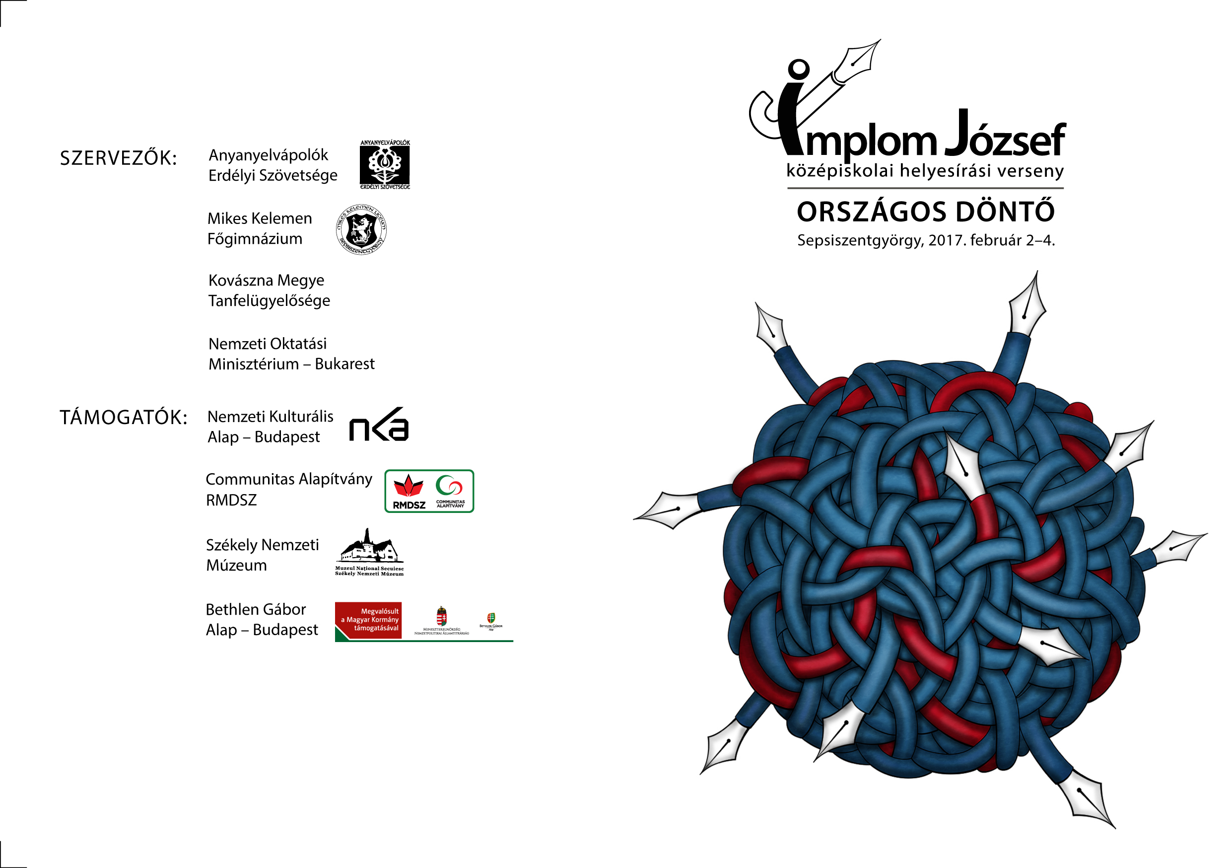 Az Anyanyelvápolók Erdélyi Szövetsége, a bukaresti Nemzeti Oktatási és Kutatási Minisztérium és a Mikes Kelemen Főgimnázium szervezésében 2017. február 2. és 4. között kilencedik alkalommal került sor Sepsiszentgyörgyön a középiskolások Implom József országos helyesírási versenyére. A versenyre idén 72 középiskolás diák érkezett. A versenyzőknek egy tollbamondást, valamint egy helyesírási feladatlapot kellett megírniuk, kitölteniük, ezeket a magyarországi versenyek követelményrendszeréhez igazodva dr. Cs. Nagy Lajos, a pozsonyi Comenius Egyetem és dr. N. Császi Ildikó, a Maribori Egyetem tanárai állították össze. A megnyitót követően a dolgozatírással egy időben került sor a tanárok fórumára. Délután városnézésre és múzeumlátogatásra került sor, este színházi előadást nézhettek meg a résztvevők. Másnap került sor a verseny kiértékelésére és a díjkiosztásra. Az Implom József Helyesírási Verseny Kárpát-medencei döntőjén a következő tíz erdélyi tanuló vehet részt: